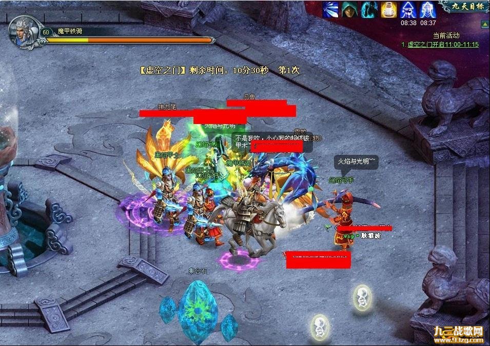 动态副本BOSS魔甲铁骑确实是个厉害角色,血厚防高,并且拥有破甲、破灵技能,稍不留神就会命殒黄泉。对付这种BOSS,伤害的高输出无疑是不二之选。在此建议组队围攻虚空之门BOSS时,队伍配置为一破军(抗BOSS)、一铃星(加攻击)和三个天殇(主力打手)。在魔甲灵骑使用破甲技能时,破军抗怪首选技能修罗降世,为法师赢取时间,铃星的配合无疑是为了增加整个队伍的输出,从全局来看,也是不可或缺的。