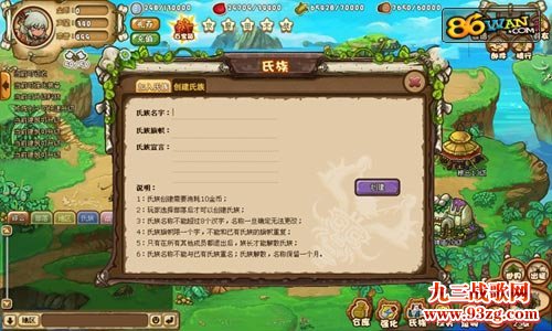 当玩家到达21级后,可在游戏界面下方点击“氏族”系统,打开氏族面板后玩家可选择加入氏族氏族或创建氏族。